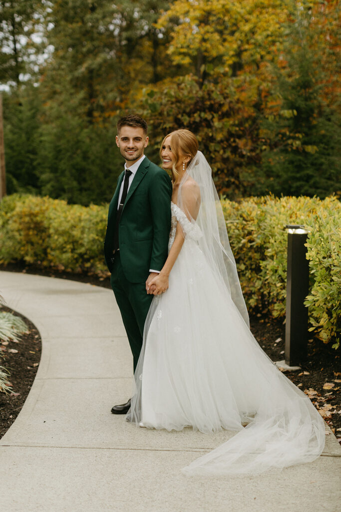 Hunter wore a custom green suit that added personality while still feeling classic and intentional.