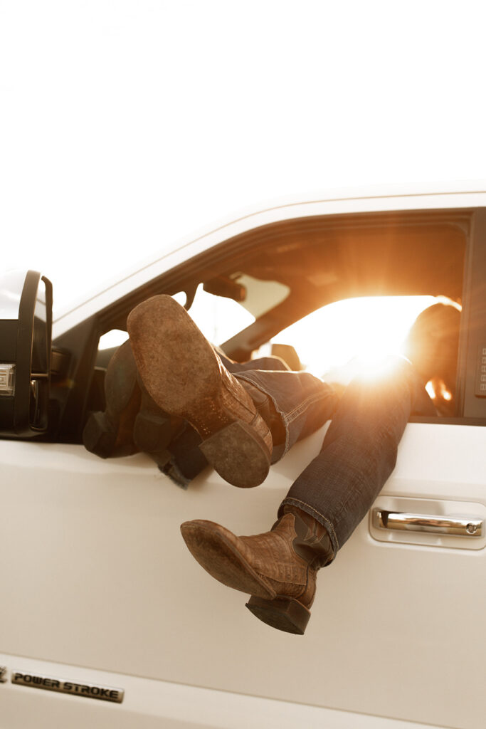 We started during golden hour in the field, keeping things simple and relaxed. As the sun went down, we moved across the road and leaned into a more casual, in-the-moment vibe — sitting in the truck, laughing, talking, and just letting things unfold.